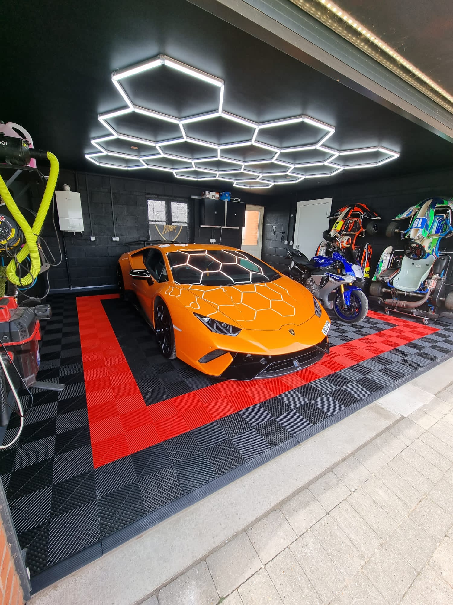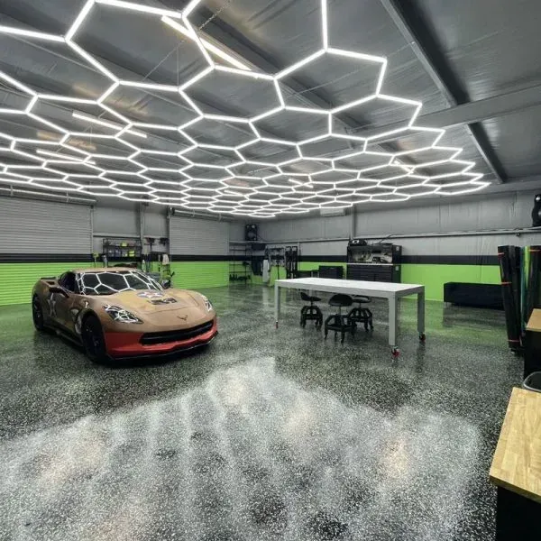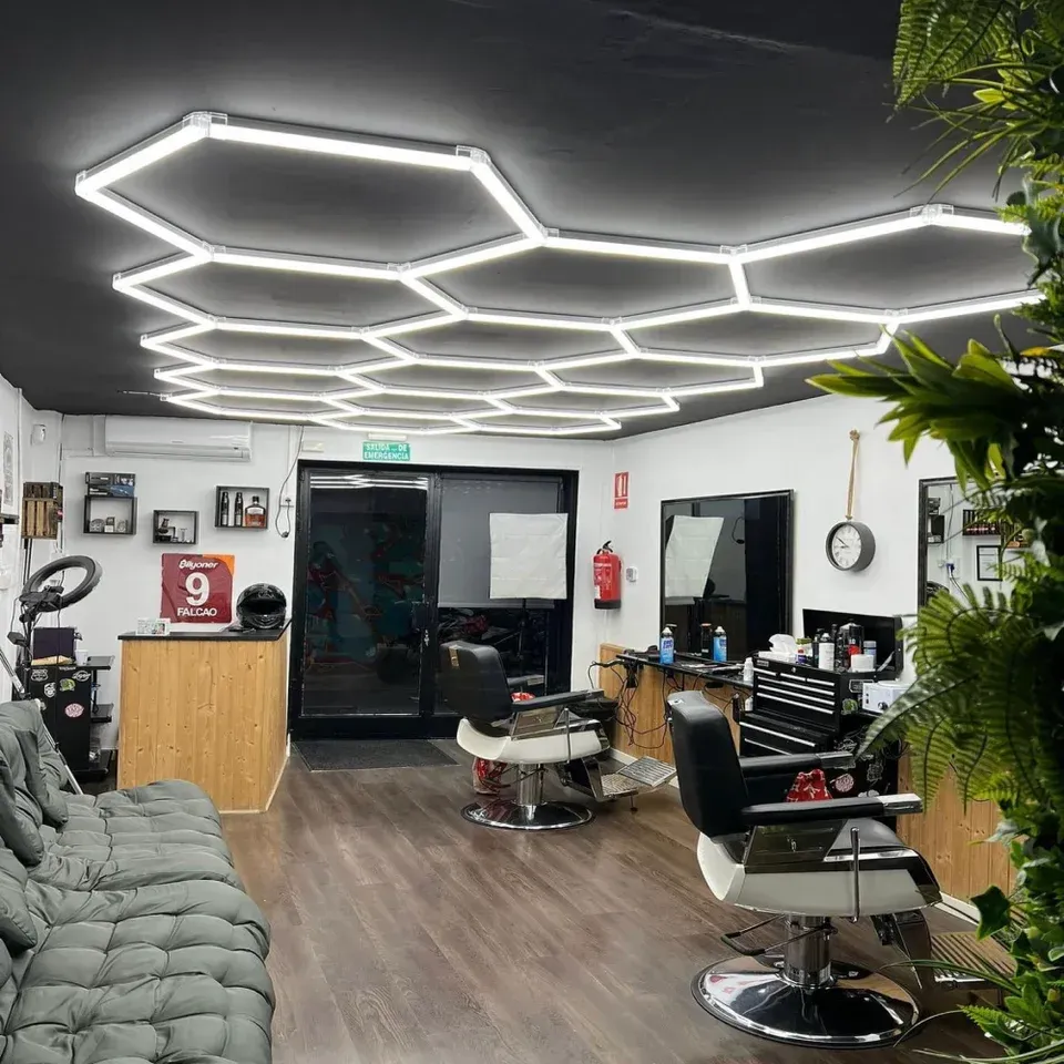 Hyper‑real hexagon and permanent architectural lighting for garages, homes and creative spaces.